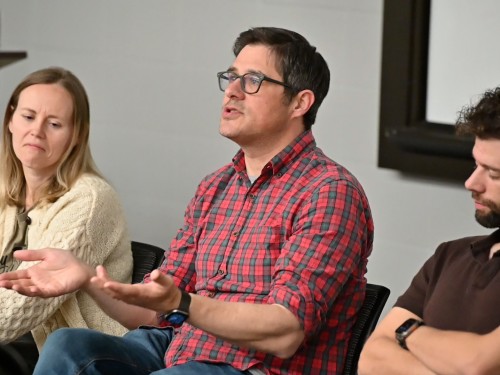 Rich Sommer '00 shares insights and advice with students during masterclass session.