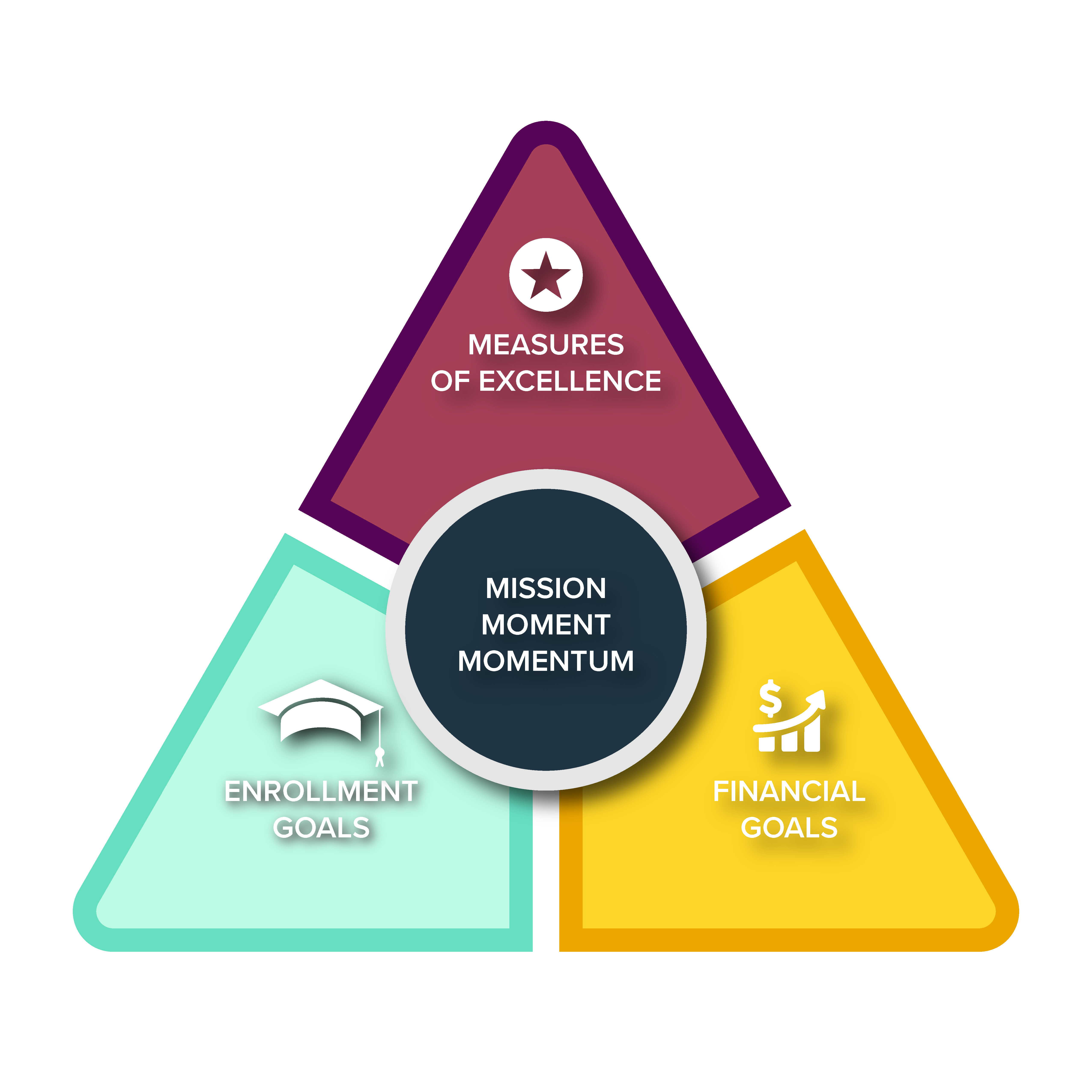 By clearly naming our priorities, the strategic model helps us weigh our actions and decisions in a thoughtful and strategic way toward the fulfillment of the college’s mission and goals. This model clarifies our focus and enlists and empowers everyone in working together to advance the college.