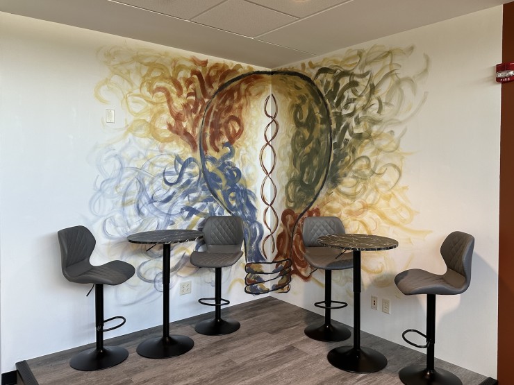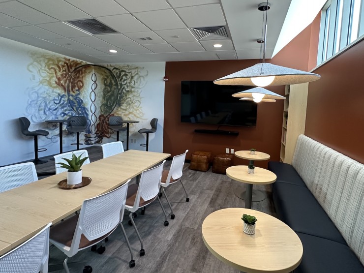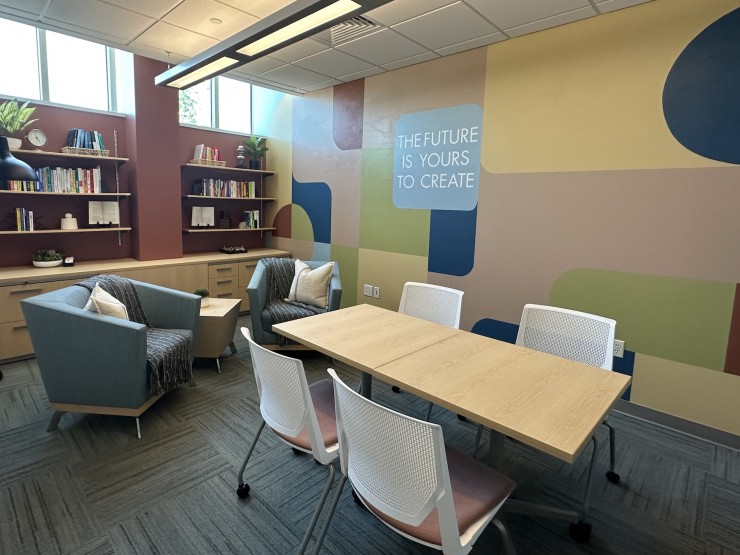 - A colorful kitchenette for catering events or for students to store and grab their lunch between classes