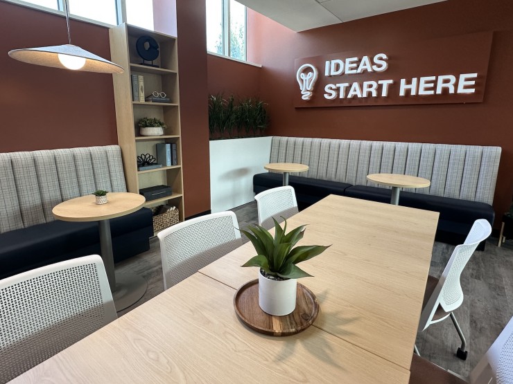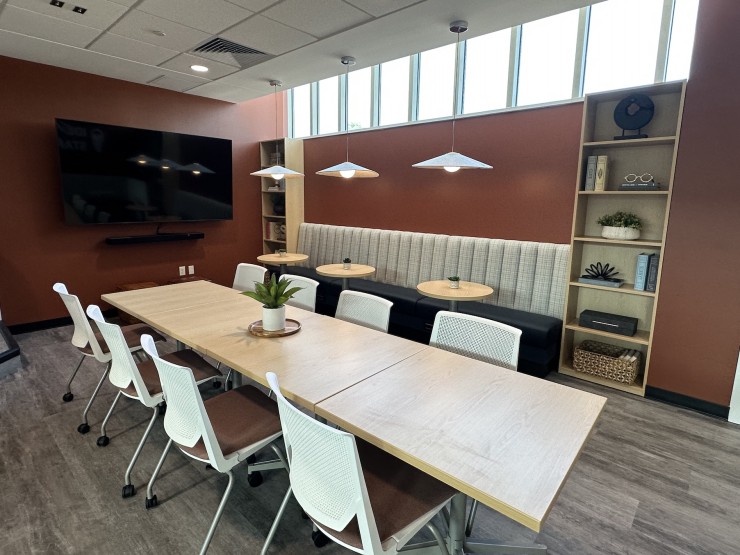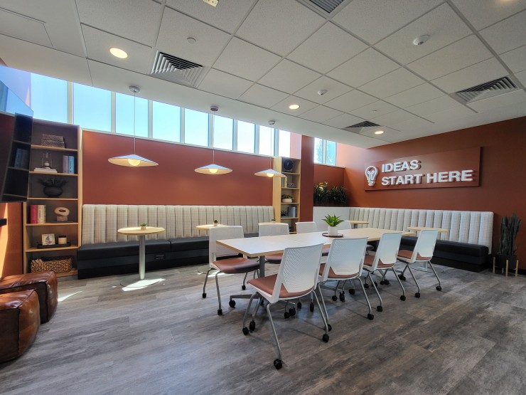 - A vibrant event space with flexible furniture and comfortable booths to gather for meetings, events, workshops, or social gatherings