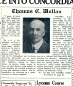 Professor T.C. Wollan came to Concordia College as head of the Department of Mathematics in 1917, having served since 1903 at Park Region Luther College, where he was principal of the academy and head of the Department of Mathematics when he left in 1917. An 1894 graduate of the University of Minnesota, he taught at Concordia from 1917 until his death in 1932. A man of rugged integrity, quaint humor, and down-to-earth philosophy, T.C. Wollan was a well-respected and beloved teacher.