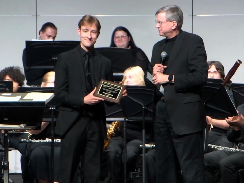 Band director Noah Johnson '20 was surprised Tuesday, Dec. 16, with the Young Band Director of the Year award from the American School Band Directors Association.