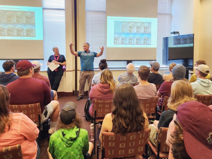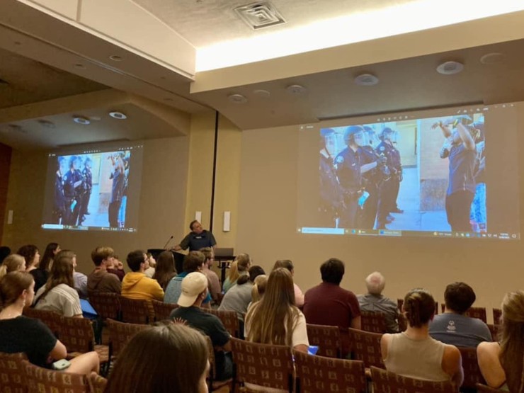 Attendees had the opportunity to listen to presentations from nationally known photojournalists and a roundtable conversation between the keynote speakers and President Colin Irvine. They could also choose two of 14 presentations from regional photographers, Forum Communications journalists, and college faculty and staff on topics ranging from historical and sports photography to fake photos and images produced by AI. (more photos from concurrent sessions in gallery below)