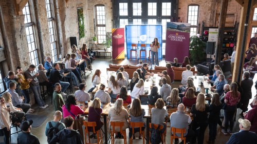 This event was co-hosted by Concordia's Entrepreneurship Club, Career Readiness Board, and Women in Business Club, through the Offutt School of Business. Entertainment was provided by the Women in Business Club vice president, Ava Hanson ’25, who played two original songs.