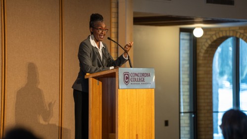 Theologian and speaker Dr. Wylin Wilson encouraged Concordia College students and community members to take up the mantle of Dr. Martin Luther King Jr. and dream on Jan. 19, as people gathered to commemorate the Civil Rights-focused holiday named for him.