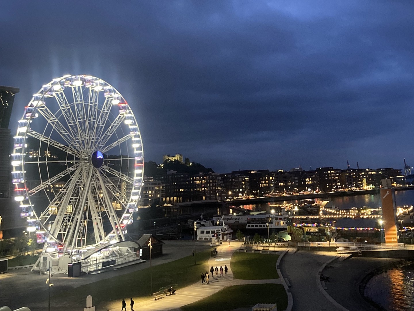 After the concert, we headed to Max for dinner. It was a burger place. There were veggie burgers there, so I was super excited. I’m surprised by how many pescatarian options have been available in Sweden and Norway so far. After eating, a group of us walked up the outside of the opera house to take pictures of the city from the rooftop — it was BEAUTIFUL. The sunset was so pretty and the Ferris wheel lit up the sky. We were told the Ferris wheel was built to hide the “ugliest building in Norway.” I’ve really been getting my steps in on this tour, and it feels wonderful! I can’t wait for more sightseeing and city-exploring tomorrow.